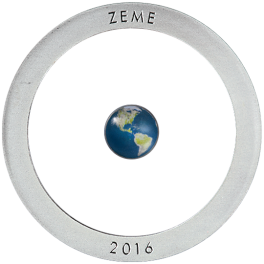 Caurspīdīga, bet ārkārtīgi izturīga jauna keramiskā materiāla perlukora izvēle atnes veiksmi arī M. Kalniņa pirmajam darbam monētu mākslā, veidojot grafisko dizainu monētai Zeme (2016). Sudraba gredzena ietvertā perlukora apļa vidū kā caurspīdīgā Visuma telpā „peld” maza, reljefa sudraba zemeslode – mirdzoša kā īpašs un saudzējams dārgums. Monētu izpērk pāris stundu laikā.